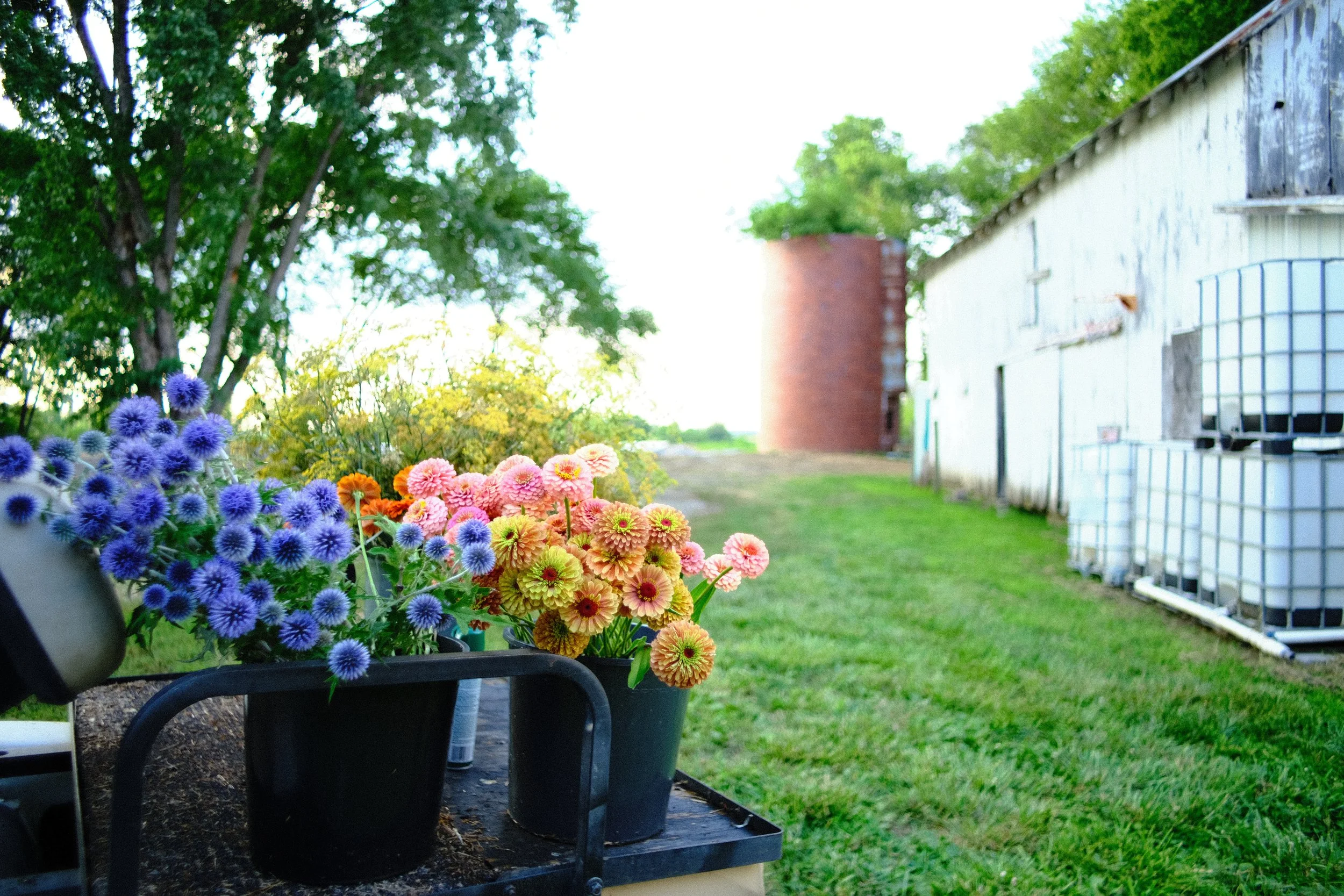 After the short tour, we'll set up at some tables in our fields, weather permitting, or on our porches for a bouquet building demonstration. You'll get to select from the best of the best flowers to create your own arrangement. If you see something that strikes your fancy on our tour, you're welcome to snip flowers straight from the fields too.
